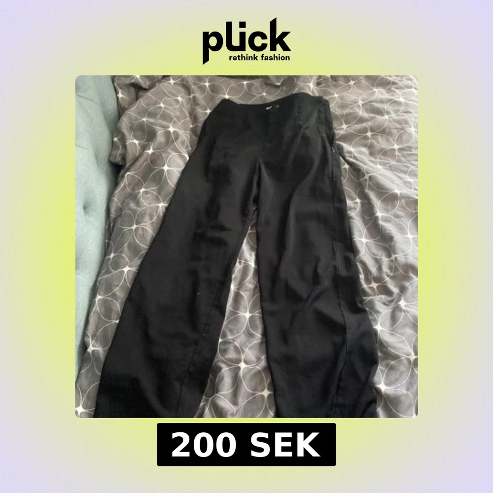 Snygga svarta byxor från Bik Bok i storlek XS. De har en klassisk design med en rak passform och är perfekta för en stilren look. Byxorna är tillverkade i ett mjukt material som ger en bekväm känsla hela dagen.