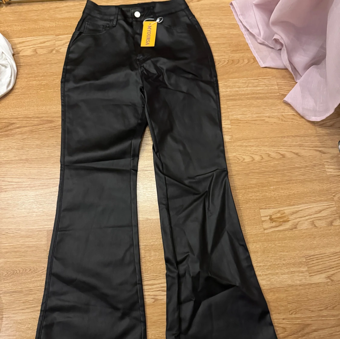 Snygga svarta läderbyxor med hög midja. Aldrig använda lappen är kvar