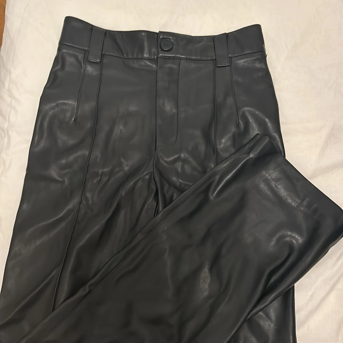 Svarta läderbyxor från Zara. Samma modell som bild två men svarta istället. Jag är 168💕