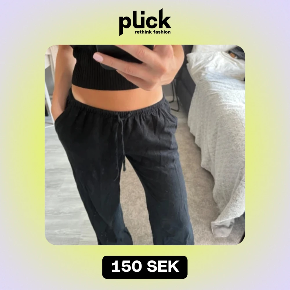 Säljer dessa snygga linnebyxor i svart från hm , då de har blivit för korta på mig (se sista bilden ) jag är 170 därav hade de passat någon kortare än mig 💕💕