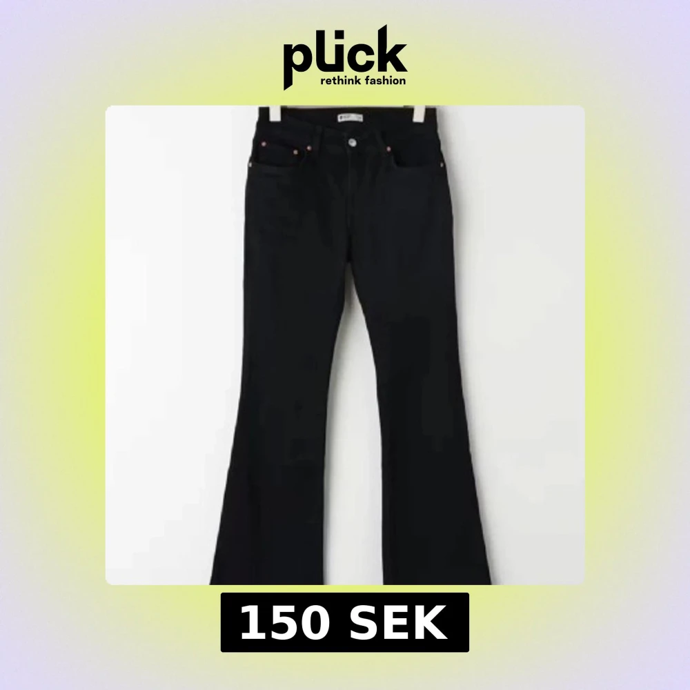 Snygga svarta low bootcut jeans med klassisk femficksdesign. Perfekta för en stilren look. De har en bekväm passform och är tillverkade i ett slitstarkt material.