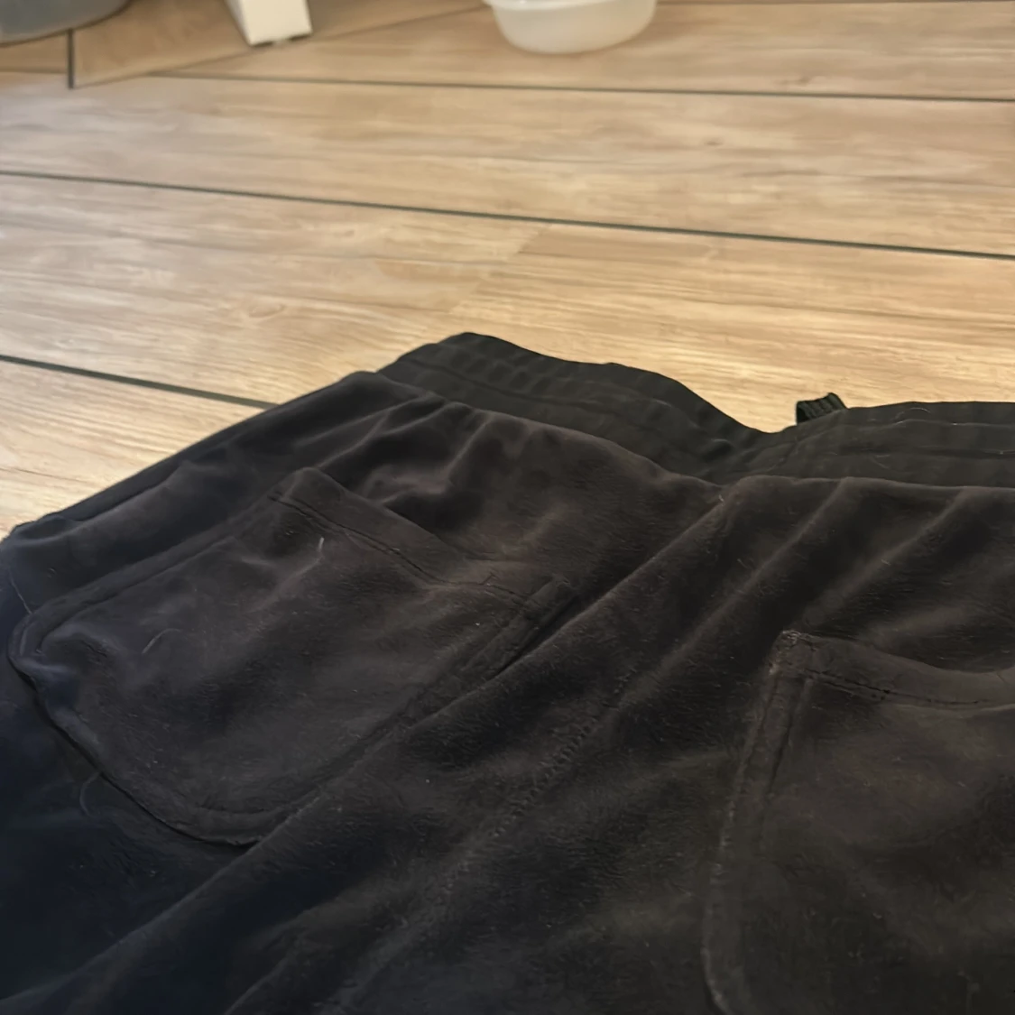 Svarta mjukisbyxor från Lindex med dragsko i midjan och två bakfickor. Byxorna är i mjukt material och har en avslappnad passform, perfekta för chill dagar. Klassisk look med elastisk midja. Inte mycket använda så dom har ett bra skick