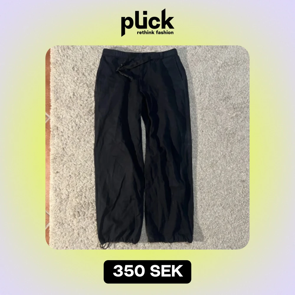100% bomull Low / medium waist byxor. Byxorna är sköna och tåliga med ett spänne som skärp. Drag skosnören vid anklarna. Går att tvätta i 40 grader, och går även att stryka. Skriv för att se måtten.