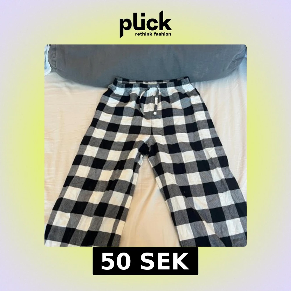 Snygga och bekväma byxor med svartvitt rutmönster. De har en elastisk midja med snörning för extra komfort. Perfekta för en avslappnad stil.