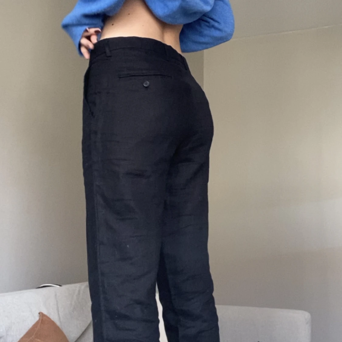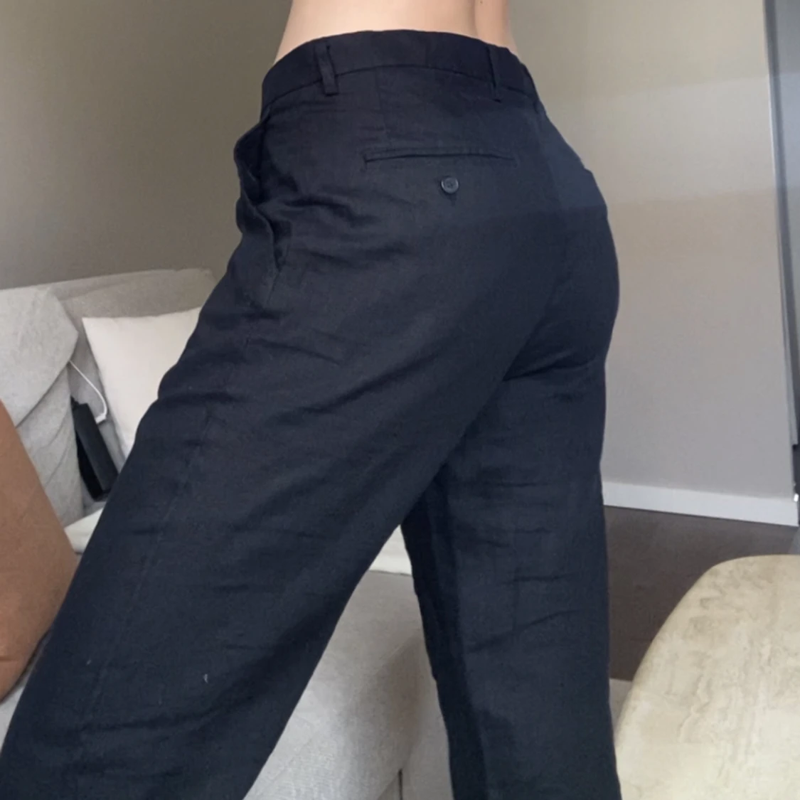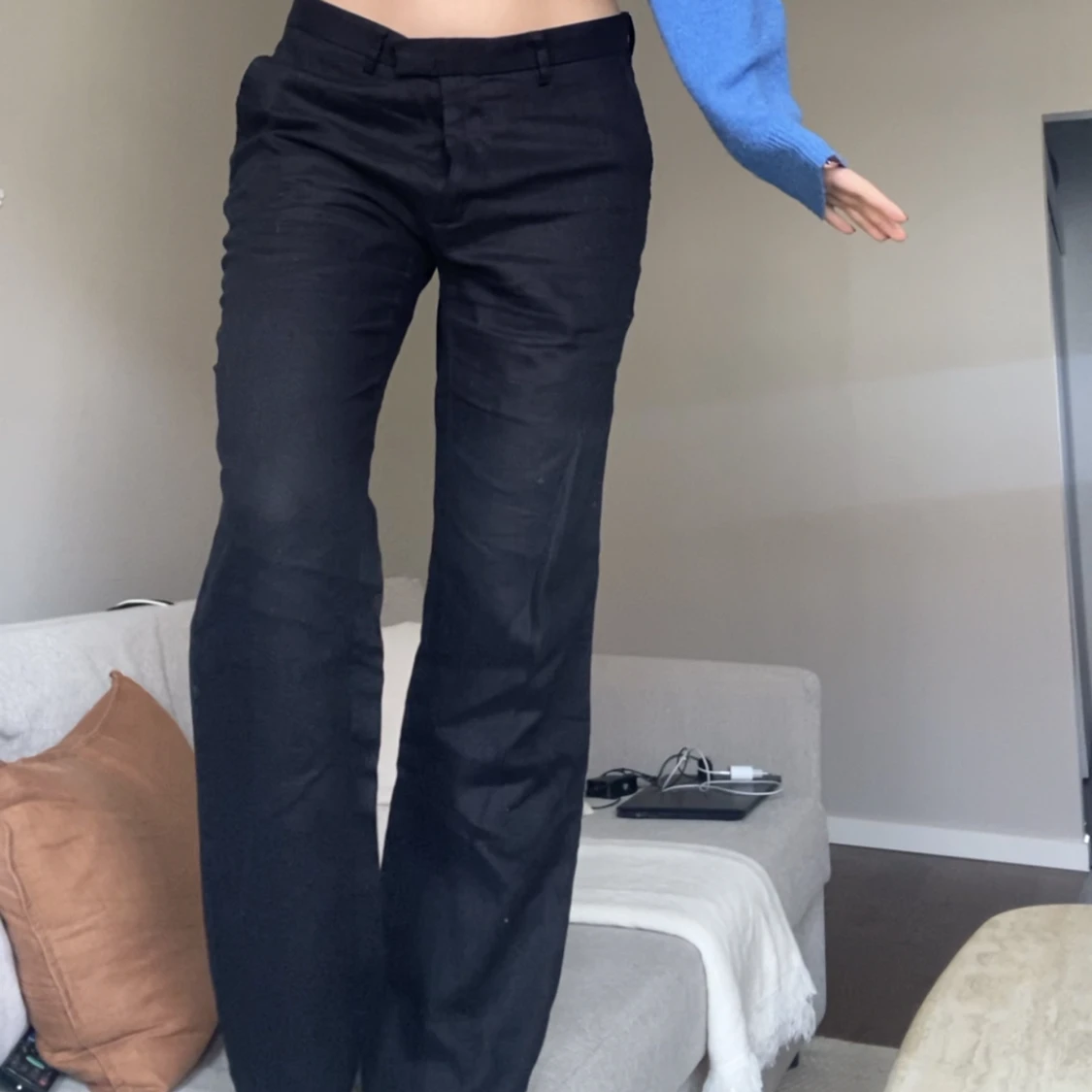 Ifrån hm passar en L (jag är m och 180 för referens) långa i benen! Lågmidjade och i toppskick men tyvärr för stora för mig🥲