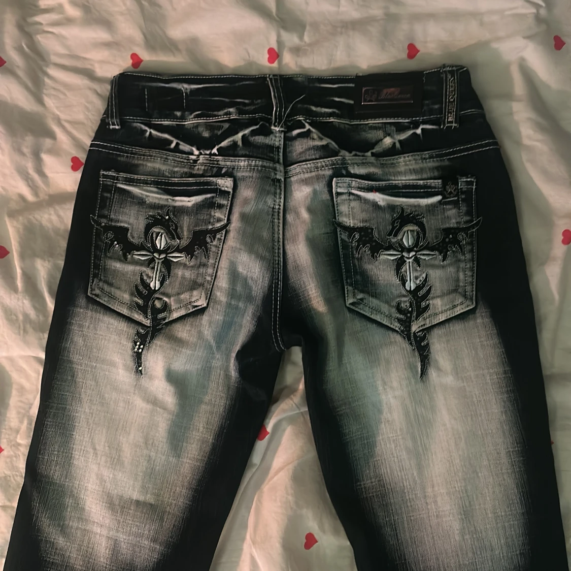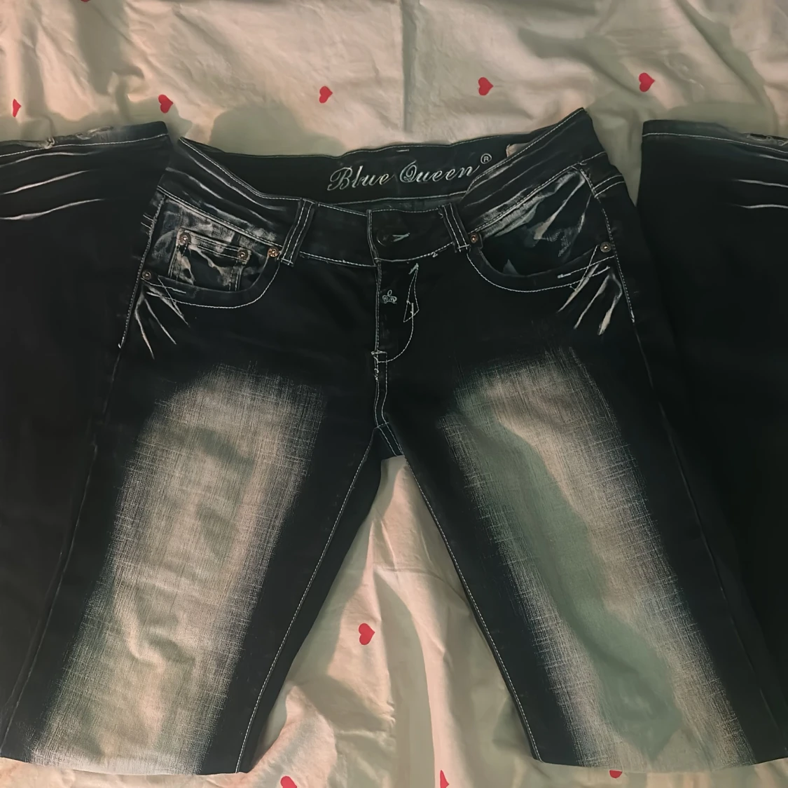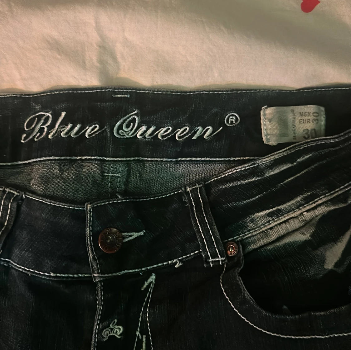 jättesnygga blue queen jeans, säljer för att de tyvärr inte kommer till användning(pris kan såklart diskuteras), köpt second hand !! lite små slitningar längst ner på byxorna men annars inga defekter, innerbenslängden är ca 84-85cm, och passar mig perfekt som är 179cm!!