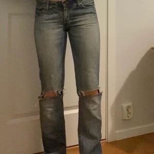 Jeansen är från Tommy Hilfiger. Dom är lite insydda i midjan därför har jag ingen exakt storlek men de passar 32/34/36. Ett par riktiga favvosar men de har tyvärr blivit för små:(