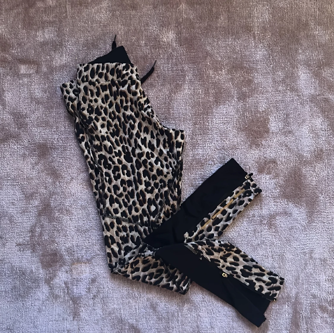 Helt nya leggings i tränings material ifrån Gina Tricot. Storlek S men passar allt ifrån xs till m beror på hur man vill att dom sitter. Knyt i midjan leo mönster