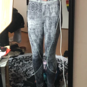 Grå träningsbyxor med reflex som på nedre delen av benet Ficka med dragkedja på baksidan Luftigt material vid knävecken