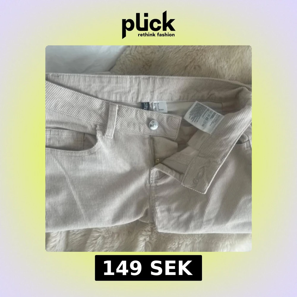 Snygga beiga manchesterbyxor från hm. Superlågmidjade och bootcut. Säljer pga att de är för små för mig💕några små fläckar som knappt syns