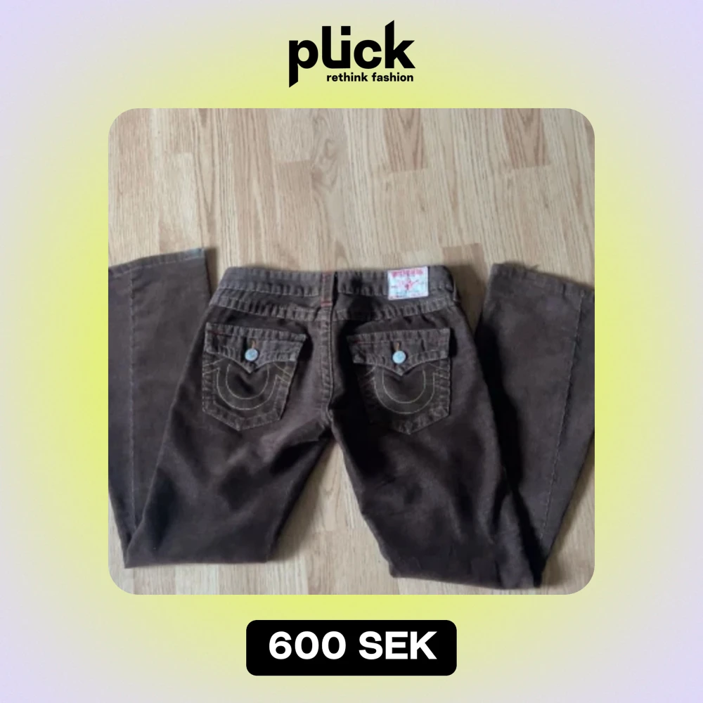 Säljer min unika True Religion jeans. De är bruna och i manchester tyg. Modellen på jeansen heter Joey. Storlek W27, innerbenslängd 76. Minimala slitningar längst ner på benen.