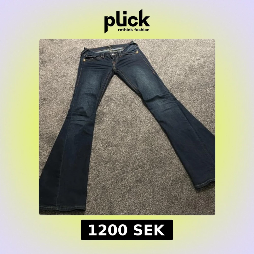 Mörkblå jeans från True Religion, modell Joey Low Rise Flare. Snygga kontrastsömmar, klassiska fickor med lock och silverknappar bak. Bootcut/flare passform och låg midja. Ikonisk True Religion patch bak. Perfekta för dig som gillar statement-jeans.
