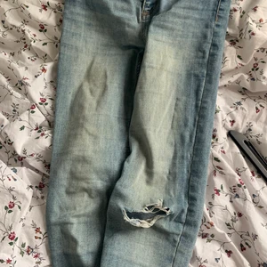 Skinnet jeans med hål i knäet. Har blivit för små. Storlek S men är stretchiga. Sitter fint. 60kr inklusive frakt
