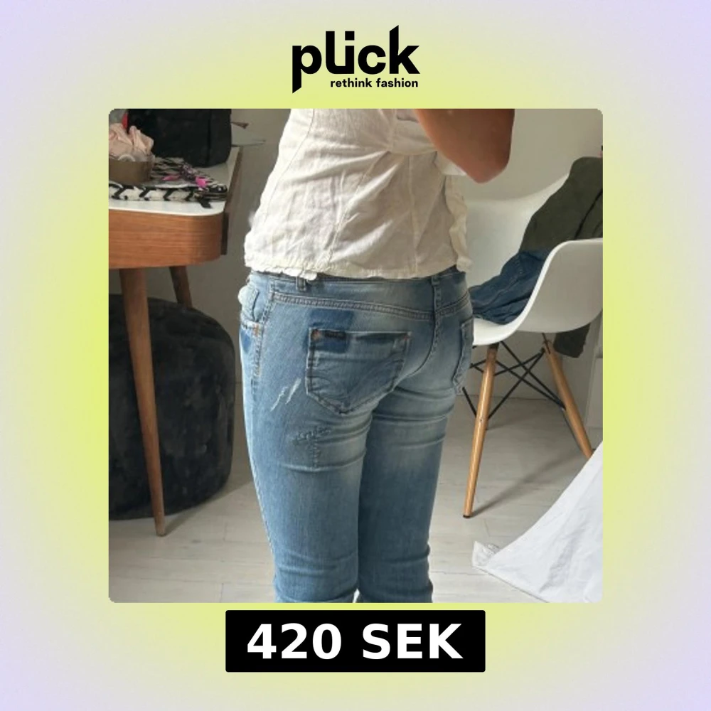 Säljer ett par ljusblå jeans från ONLY med snygga slitningar och tvättade detaljer. Jeansen låg midja och raka ben. Materialet är mjukt denim med lite stretch.
