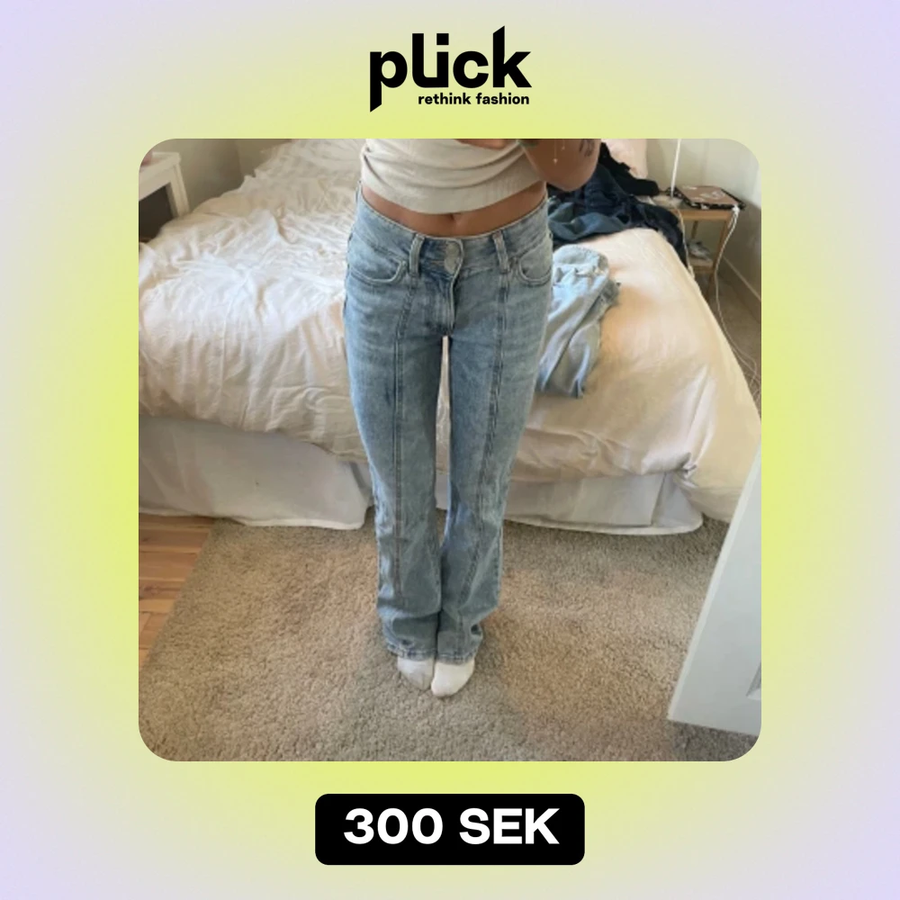 Utsvängda jeans med en snygg söm i mitten! Storlek Xs/S och jag är 165cm på bilden