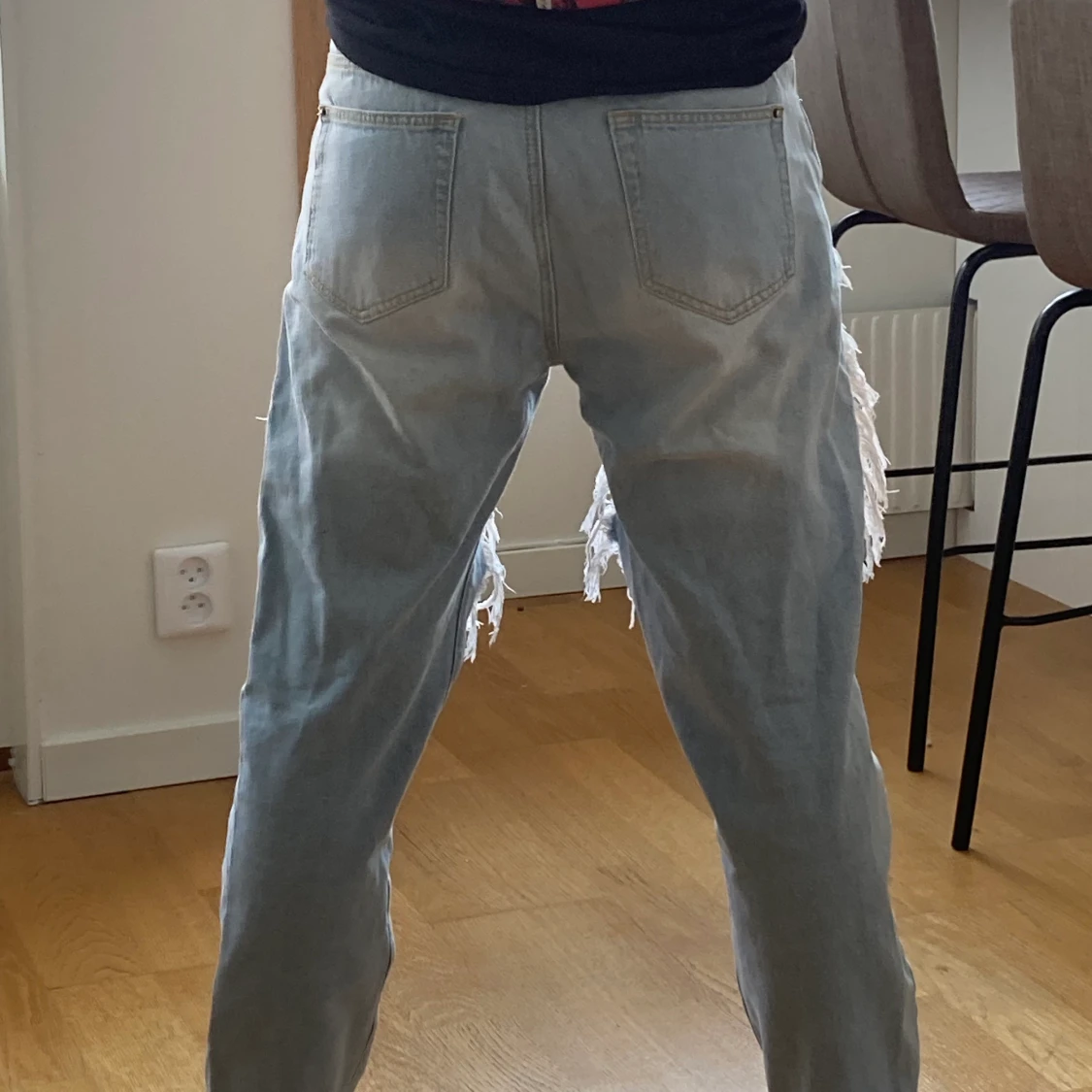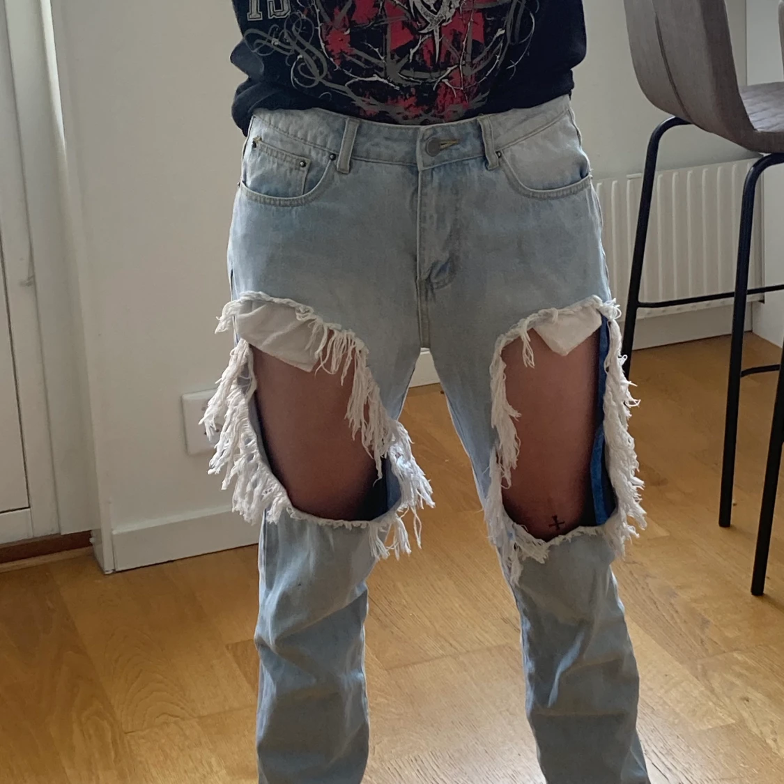 Snygga byxor med hål vid låren, bra att ha nu i vår
