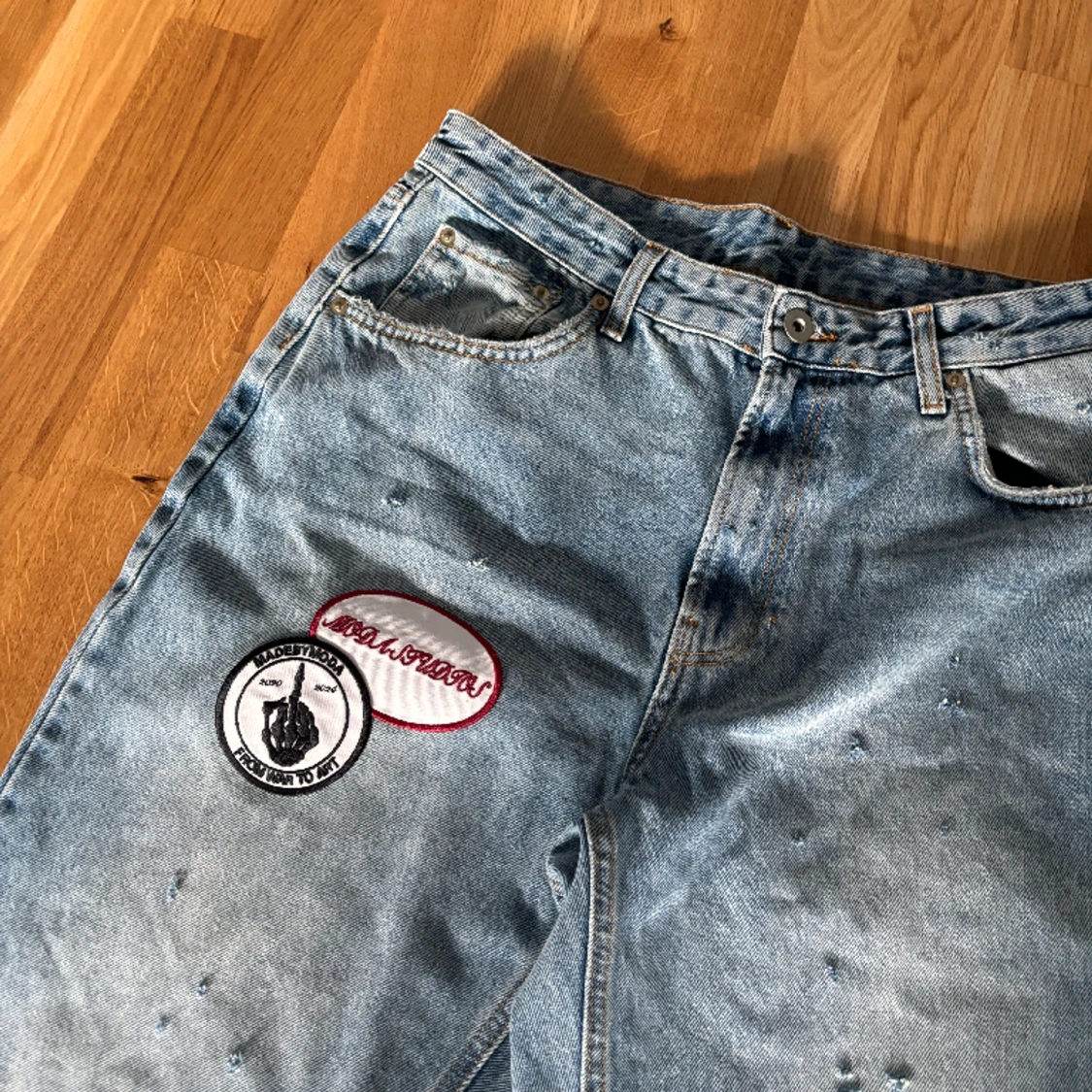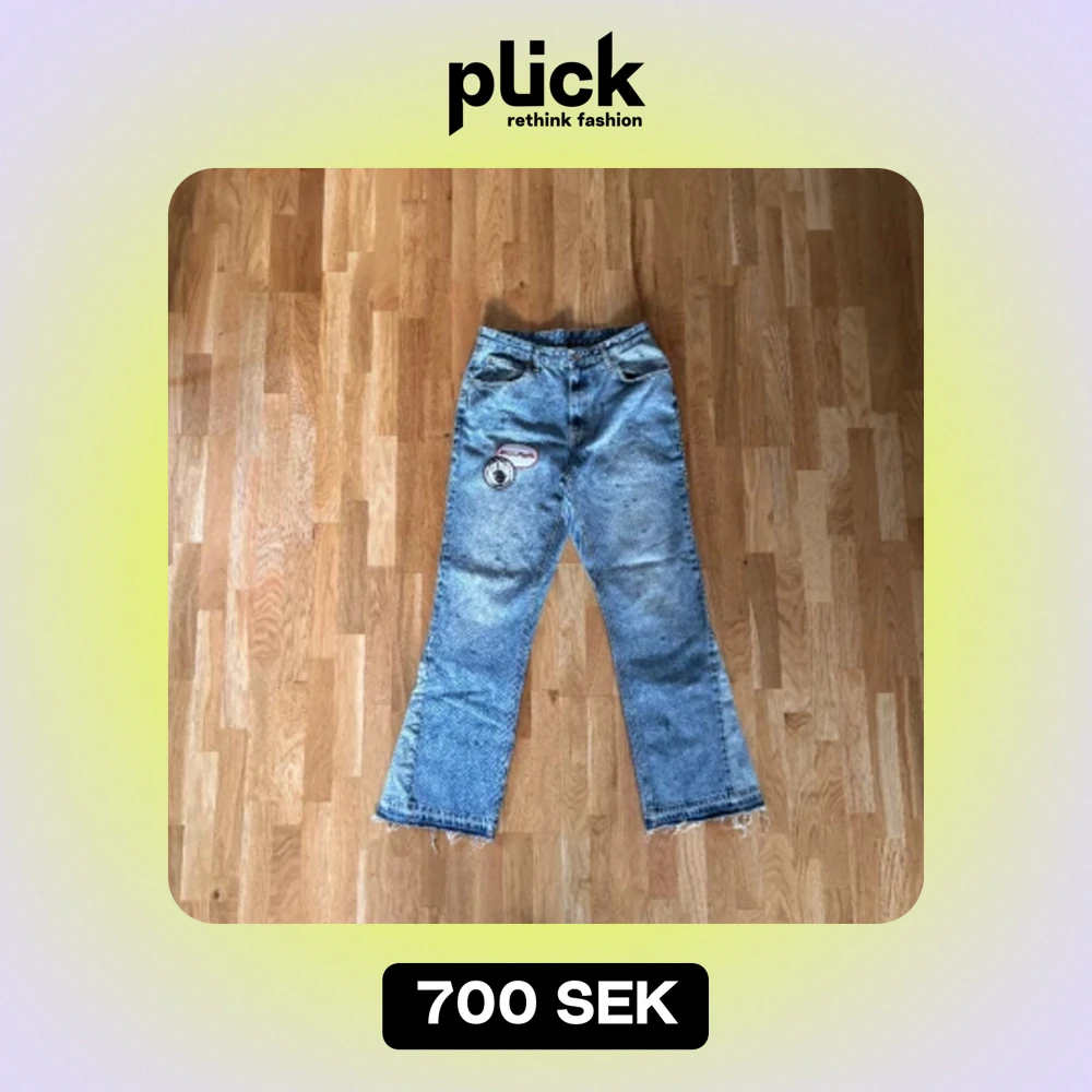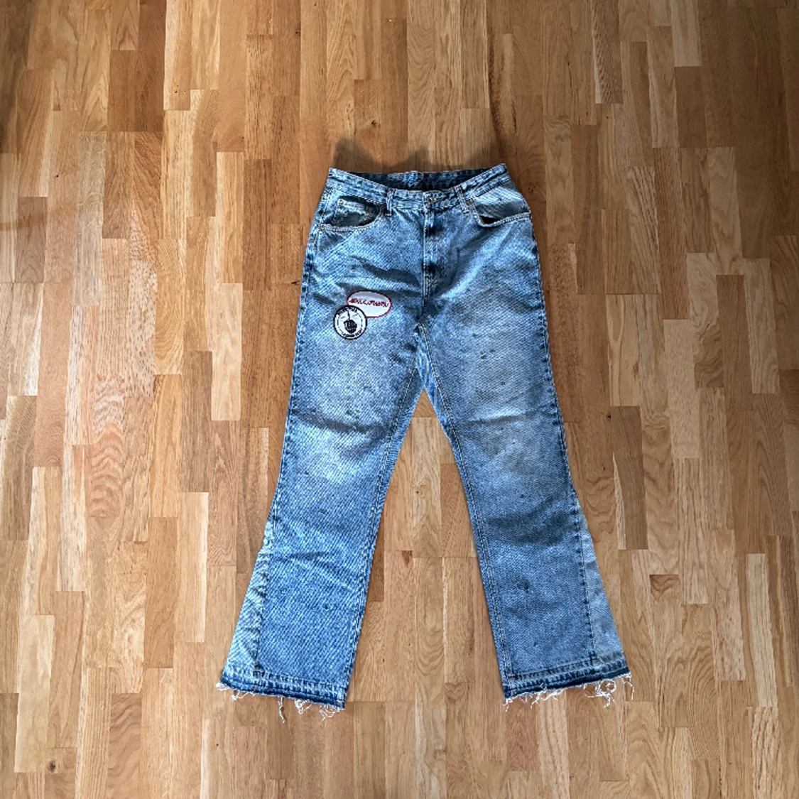 Flared jeans köpta på MADEBYMODA, helt nya. Köpta för retail: 1000kr, Endast testade, skick: 9,5/10. Passar M/L eller 40-42.