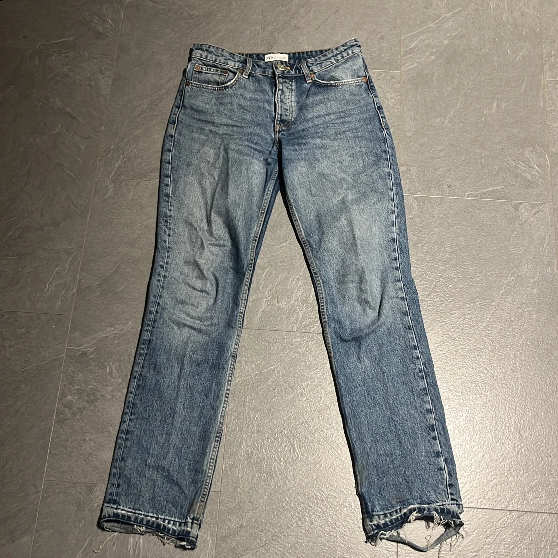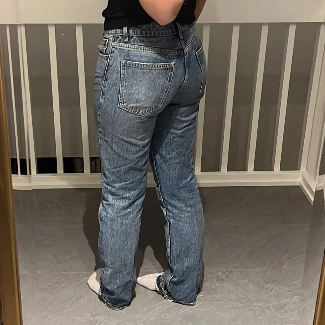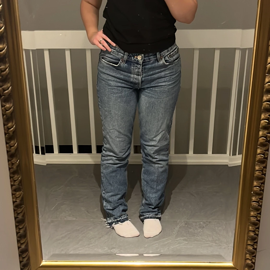 Ett par ljusblå raka jeans som inte finns o köpa på zara längre Midjemått: 39 rakt över Innerbensmått: 83 Uppsrätta där nere på benen Skriv om ni har frågor!