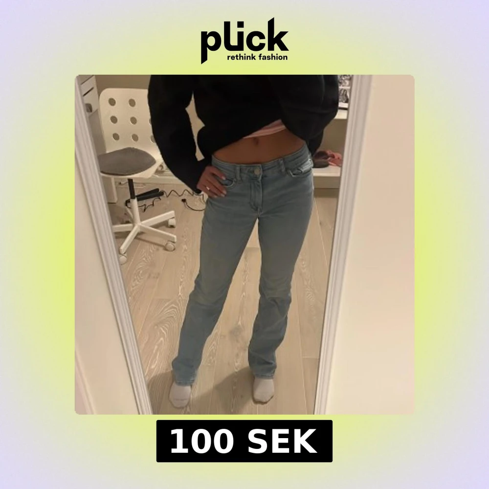 Säljer ett par ljusblå jeans med raka ben.. Jeansen har normal passform och är tillverkade i denim. Perfekta för en avslappnad stil. Storlek 25 längd 32. Ursprungspris är 500kr
