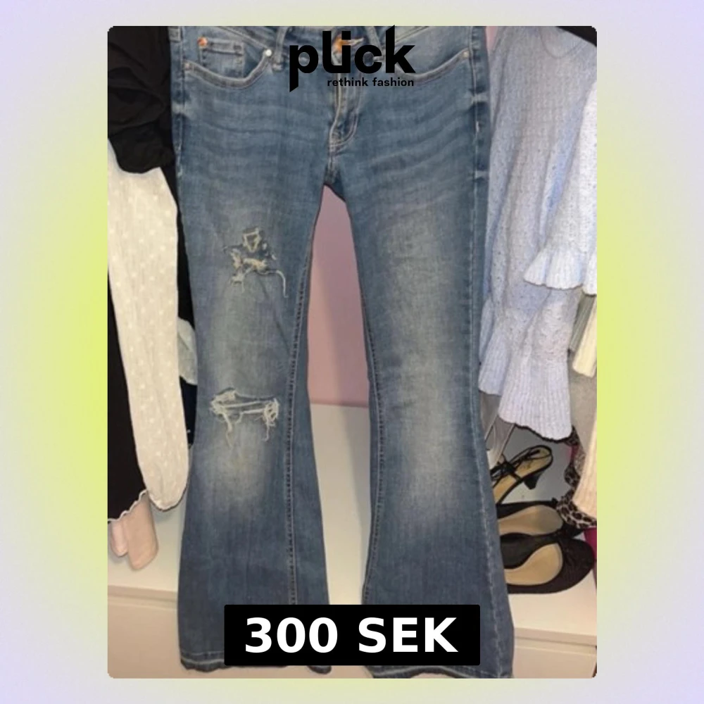 Blå bootcut jeans med slitningar - Low jeans vida bootcut💕midjemått rakt över 41 cm och innerbenslängden 84 cm. Super fint skick.