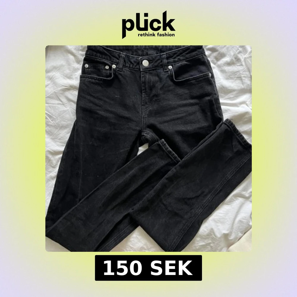 Snygga svarta straightleg jeansbyxor med låg midja från Vera Moda. Använda några få gånger men har fått aningen ljusa ”ränder” från att ha tvättats med för ljus tvätt i tvättmaskinen. Inget märkbart och försvinner säkert om de tvättas själva igen! Det är W26L34 och jag är 172 och det är precis lagom i längd på mig💕💕
