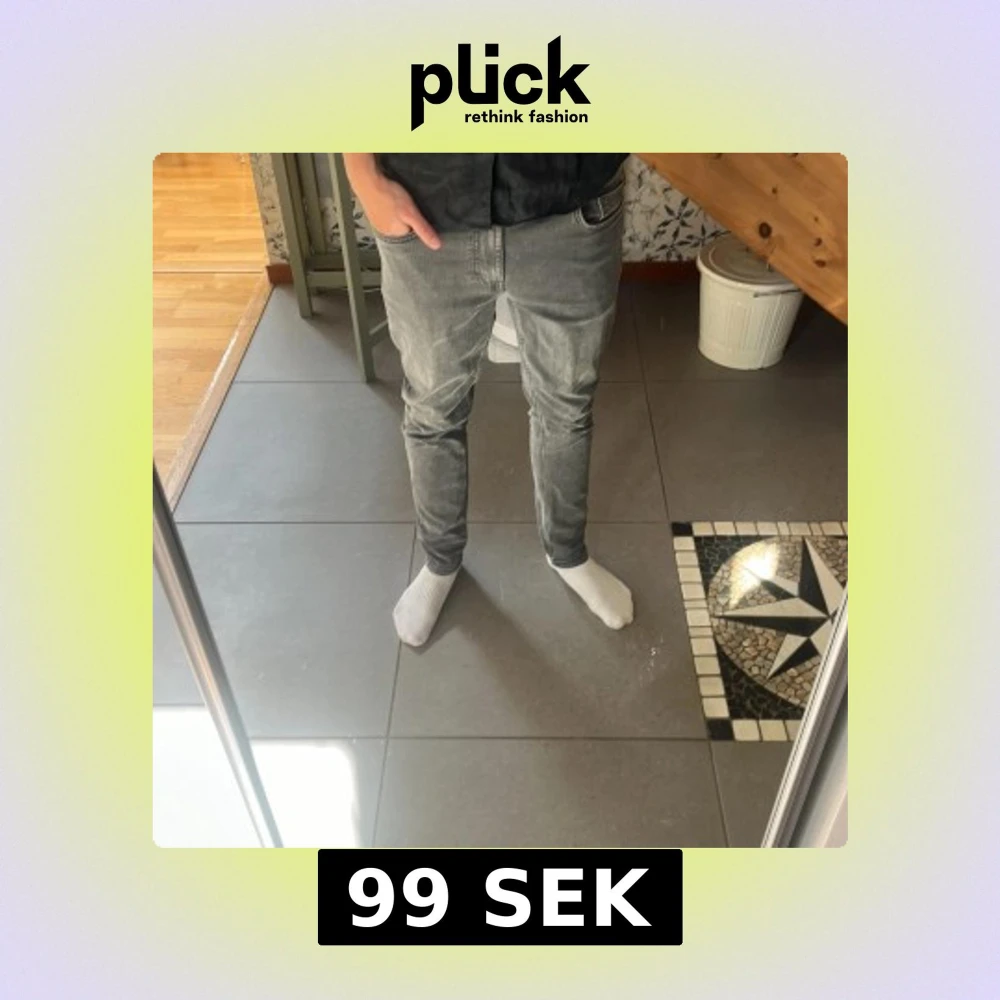 Säljer ett par grå skinny jeans från Pier One med snygg tvättad look. Jeansen har klassisk femficksdesign, normal midja och smal passform hela vägen ner. Perfekta för dig som gillar en stilren och modern vibe. Modell 185cm