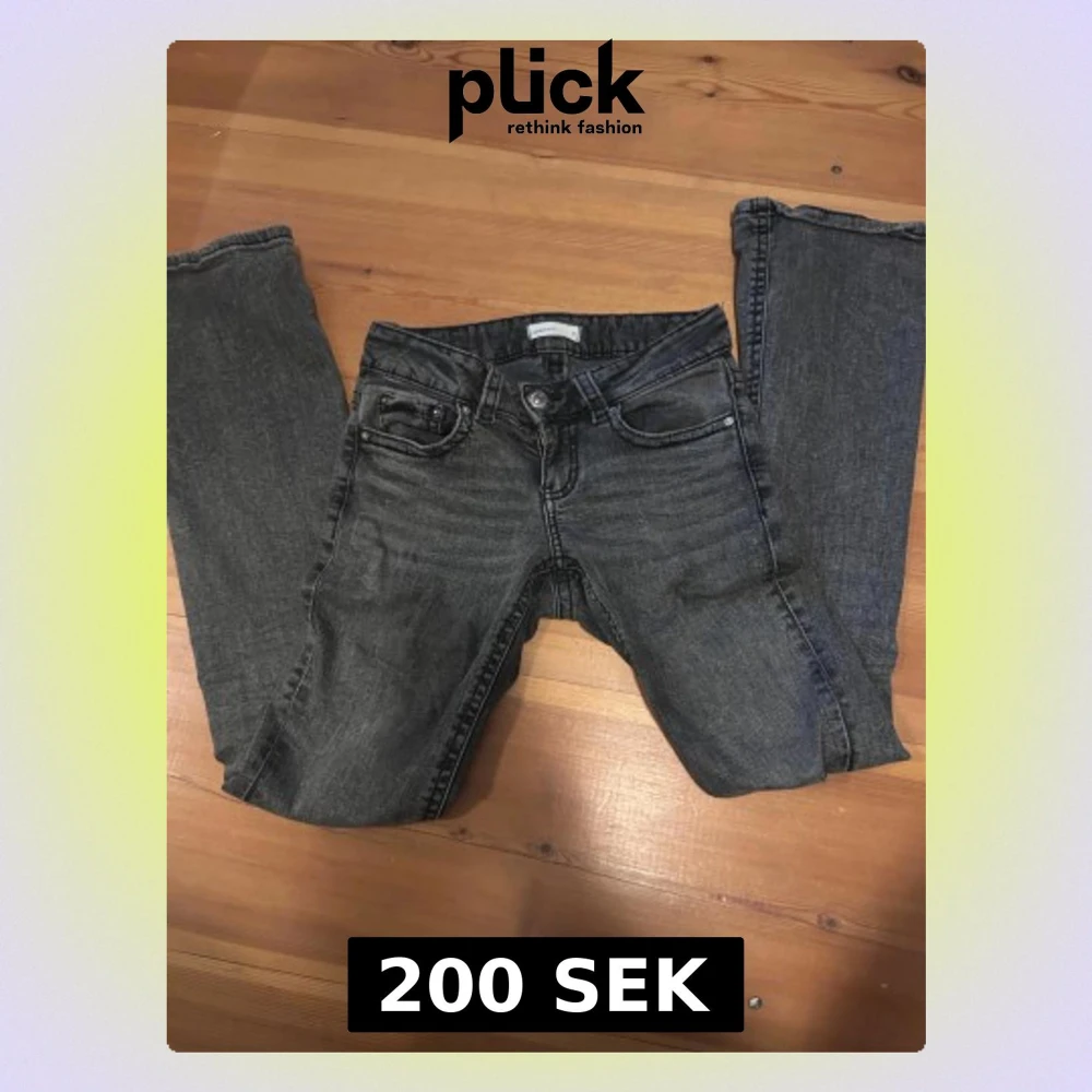 Säljer ett par snygga utsvängda och lågmidjade jeans. De har coola knappar på bakfickorna. Strl 34. Säljer pga att de inte kommer till användning längre. Skriv om du har frågor!☺️