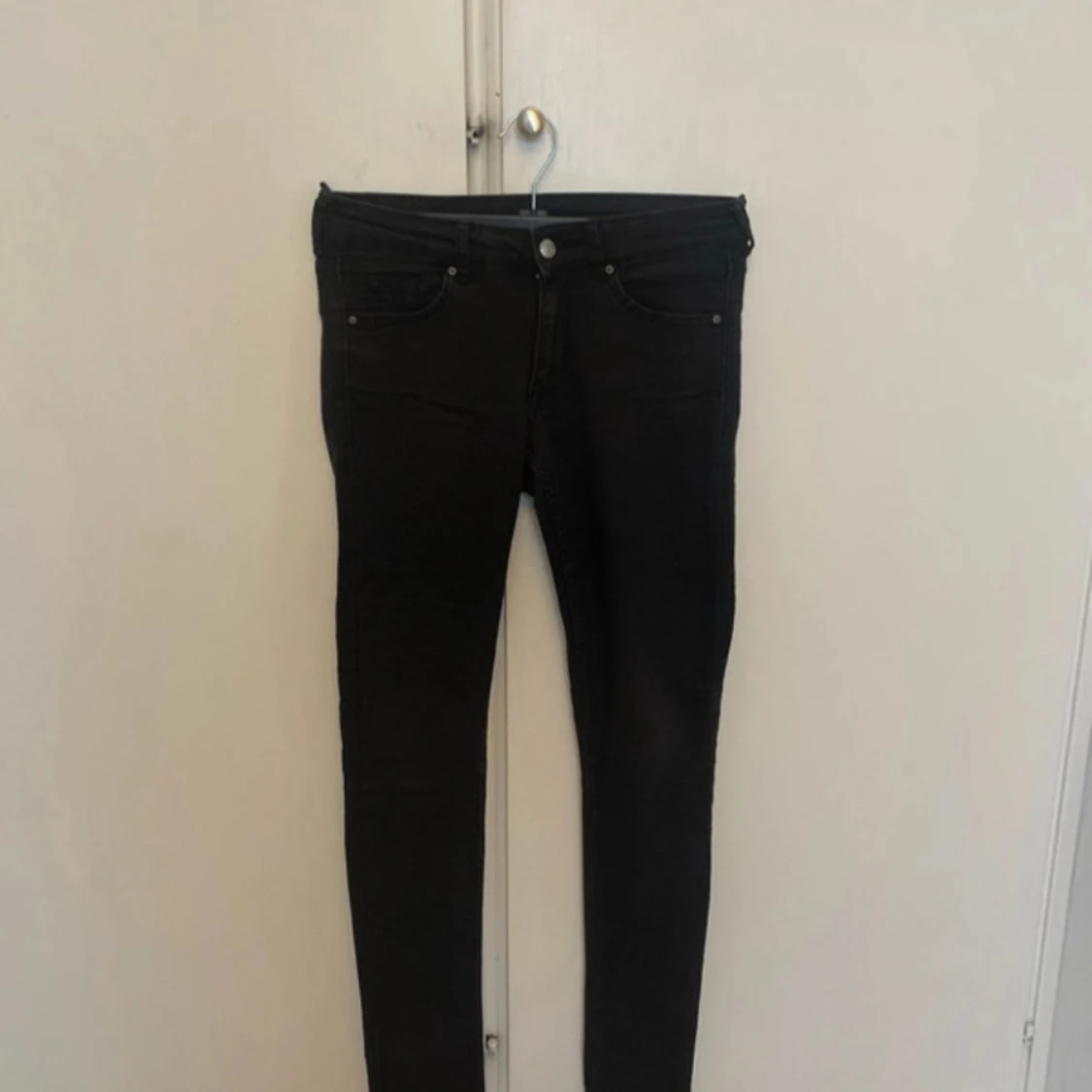Svarta jeans från H&M, storlek 34. Jeansen är använda, men i bra skick😊