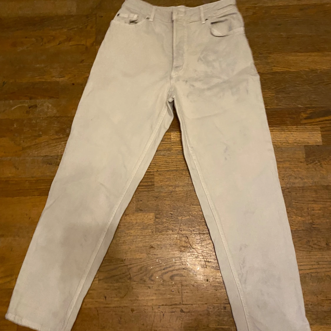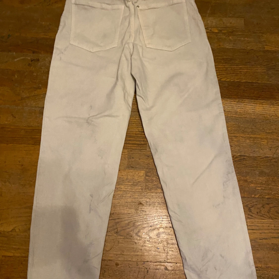 En fin vit byxa dock har den några fläckar på båda sidorna av byxan