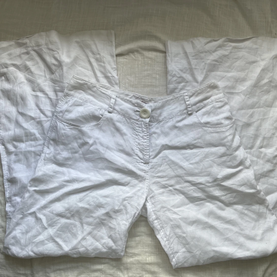 Vida linnebyxor från gamla H&M. Så snygga! Långa på mig som är 173 cm lång. Skriv för fler bilder. Möts upp på Söder, fraktar ej.
