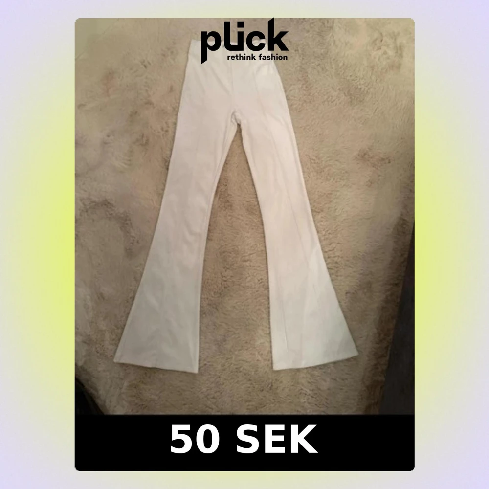 Snygga vita bootcut-byxor från FB Sister i storlek XS. Byxorna har hög midja och är tillverkade i ett stretchigt bomullsmaterial. De har en klassisk söm framtill och vida ben som ger en trendig siluett. behöver tvättas