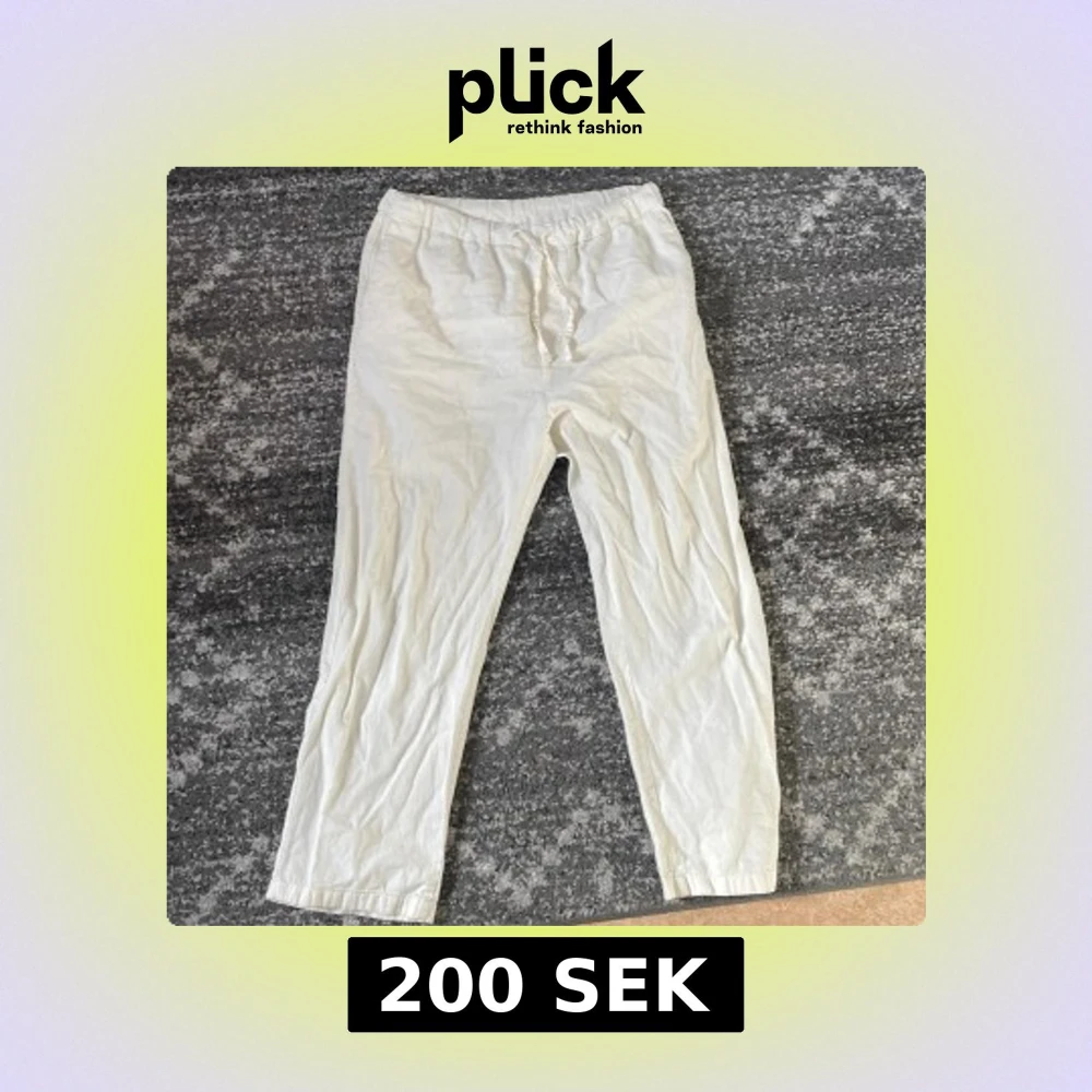 Säljer ett par vita byxor från Zara som knappt är använda. Är för stora för mig nu därför jag säljer dom!