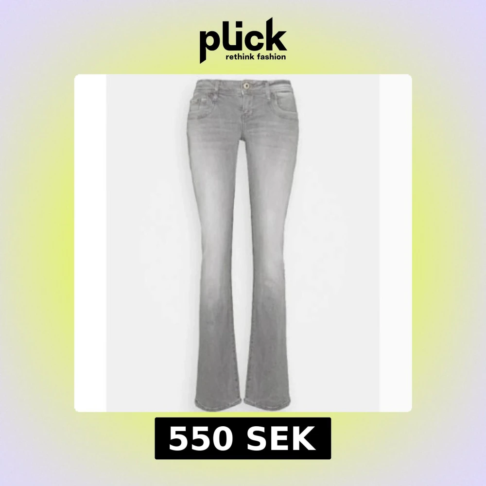 Snygga grå bootcut jeans med klassisk femficksdesign och knappgylf. Perfekta för en avslappnad stil. De är sprättade längst nere