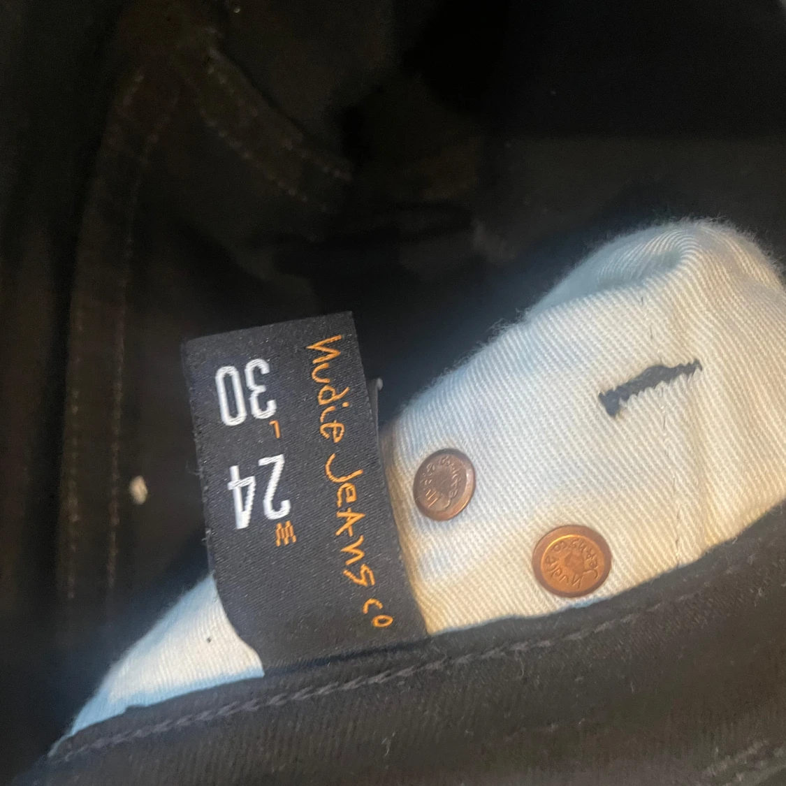 Säljer ett par nudie jeans i strl w24 L30. Passformen är tight terry. Mitt pris: 400 kr , nytt pris 1400 kr. Är som helt nya har inga defekter, säljs pågrund av det är lite små. Jeansen passar folk men ungefär 155-165. Skriv frågor om funderingar.