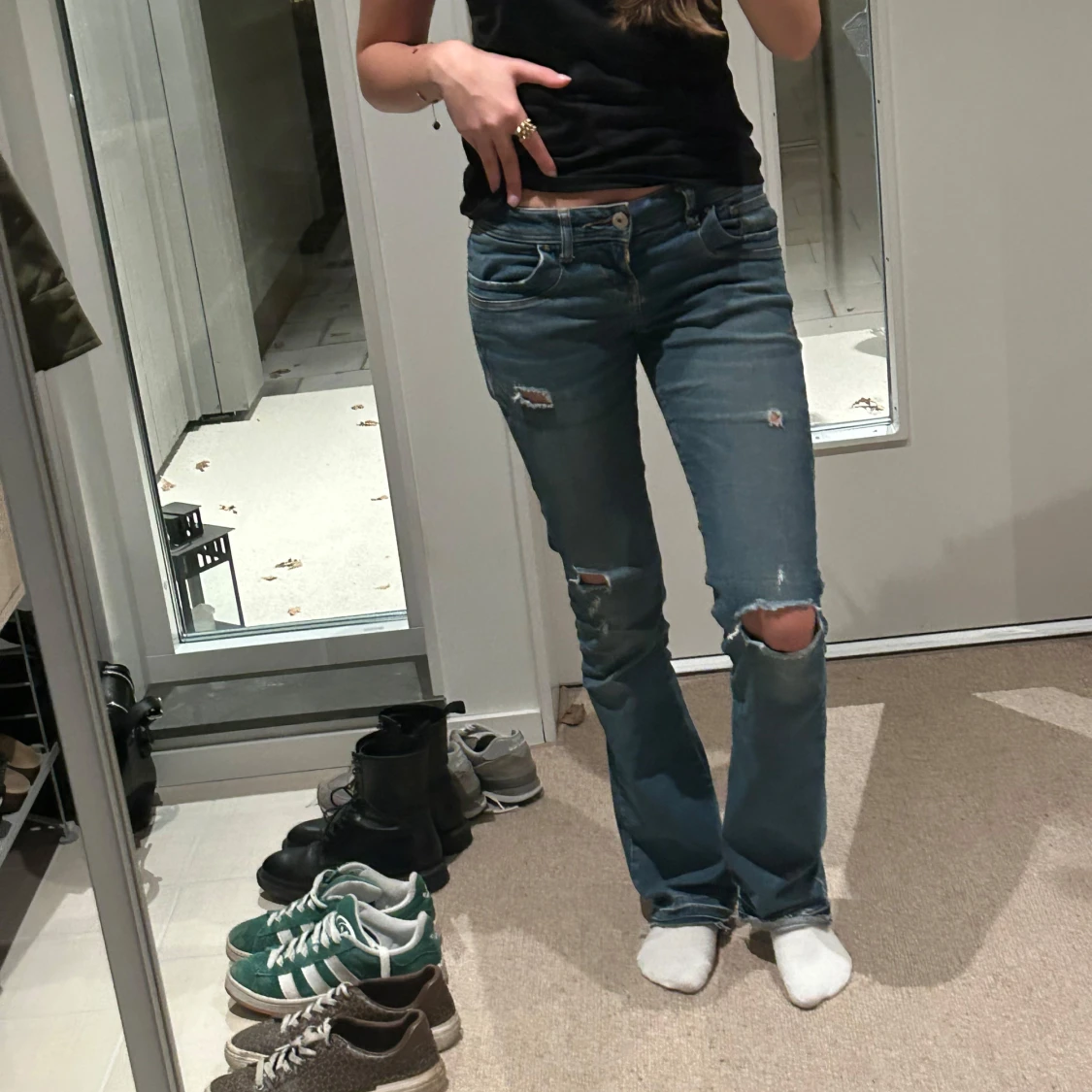 Säljer ett par blå jeans från LTB med slitna detaljer/hål och bootcut-stil.💞 Är i W26 L32 . 💞 den har en liten slitning mellan fickorna där bak, ( bild 4) de är inget hål och de syns inte 💞 de är i length 32 men de är klippta längst ner (bild 5) så de är i L30 ist 💞 skriv vid frågor 💞 PRIS GÅR ATT DISKUTERA