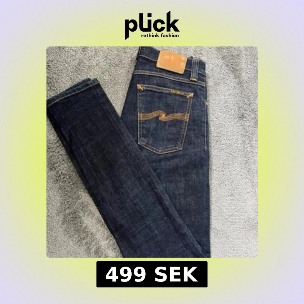 Snygga mörkblå jeans från Nudie Jeans med klassisk gul kontrastsöm och läderpatch bak. Modellen har raka ben och normal passform, tillverkade i slitstarkt jeanstyg. Perfekta för dig som gillar stilrena och tidlösa jeans. Kom gärna med bud.( BÄST PRISET NI KOMMER HITTA!!) srlk: 26/32