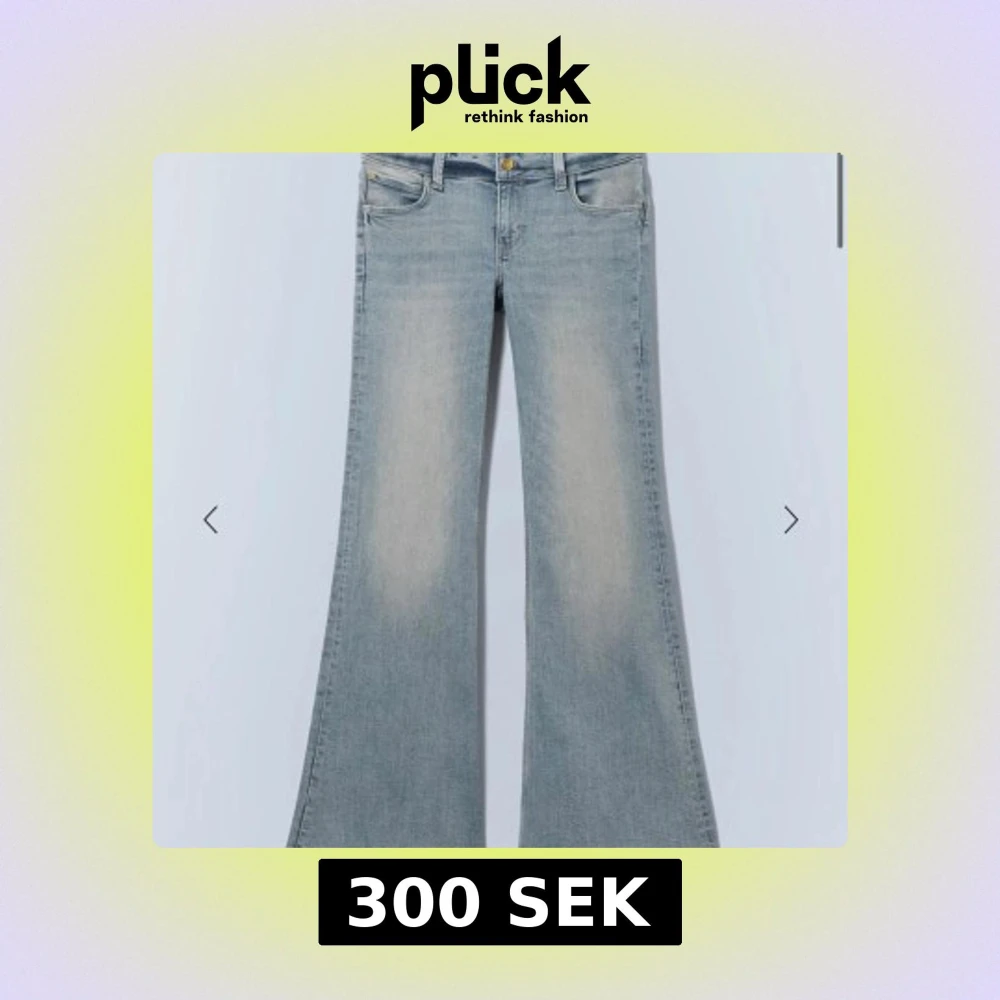 Snygga ljusblå bootcut jeans med klassisk femficksdesign och knappgylf. Perfekta för en avslappnad stil med en touch av retro. Passar bra till sneakers eller klackar för en cool look. Från cheap monday. Längd 32