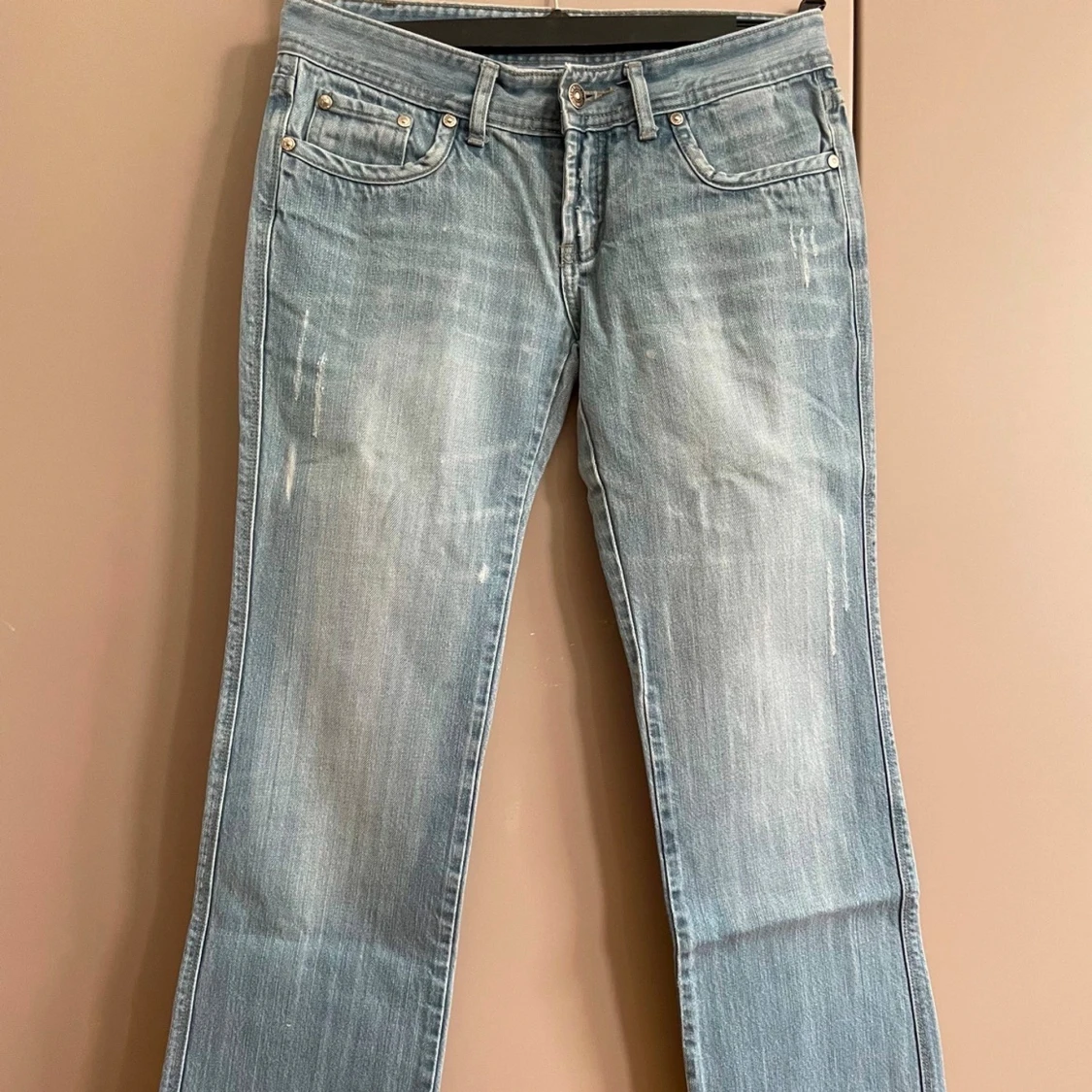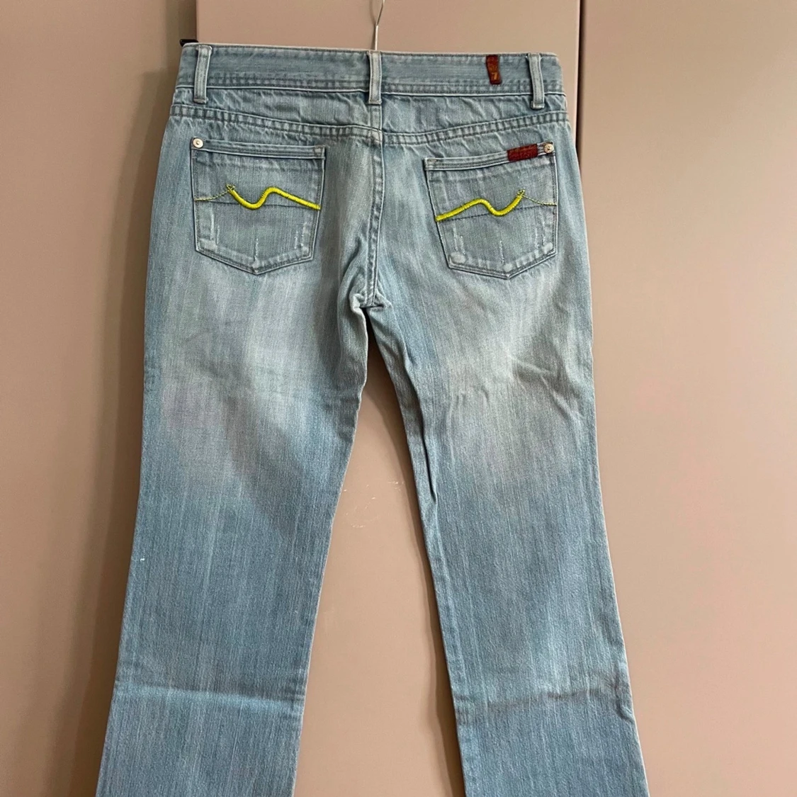 Snygga ljusblå jeans från 7 For All Mankind med bootcut passform. Jeansen har klassisk femficksdesign, slitningar framtill och coola gula broderier på bakfickorna. Tillverkade i mjukt denimtyg för en avslappnad vibe.