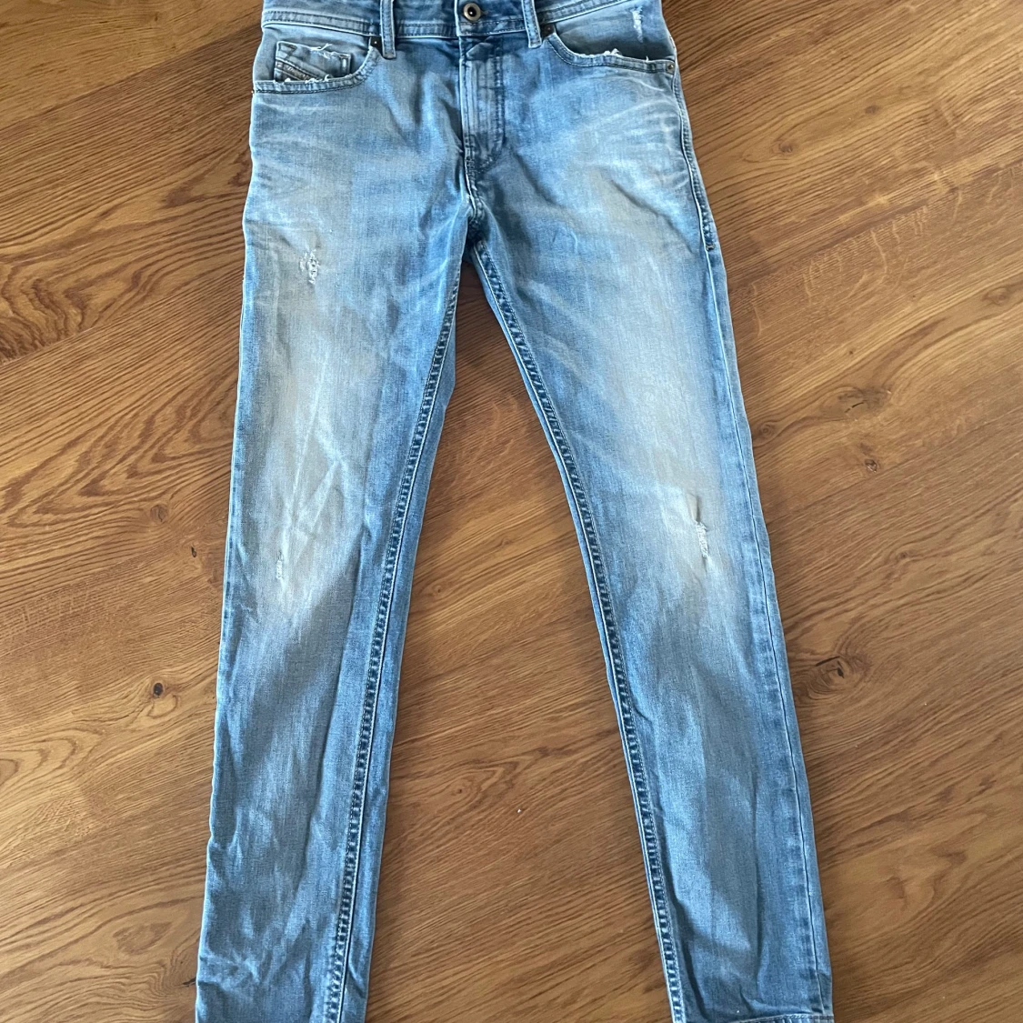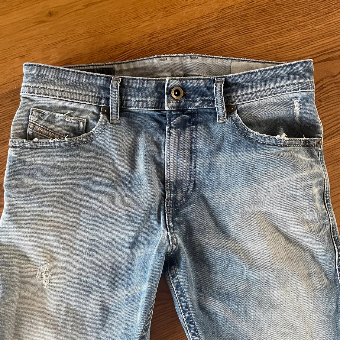 Otroliga selvedge jeans från diesel med den sjukaste faden jag har sett, sjukt sköna på och har en galen passform. Storlek 29 med slitningar som är sjukt sällsynta. Skicket är mycket bra. Fråga angående vad som helst! MVH D.C.G