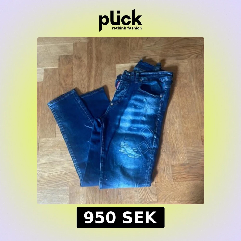 Snygga blå jeans från Dsquared2 med slitningar, broderade mönster och patch baktill. Nyaste modellen med klassisk femficksdesign och coola detaljer på benen. Perfekta för dig som vill sticka ut med en streetig vibe. NYSKICK. Använd gärna köp nu😁