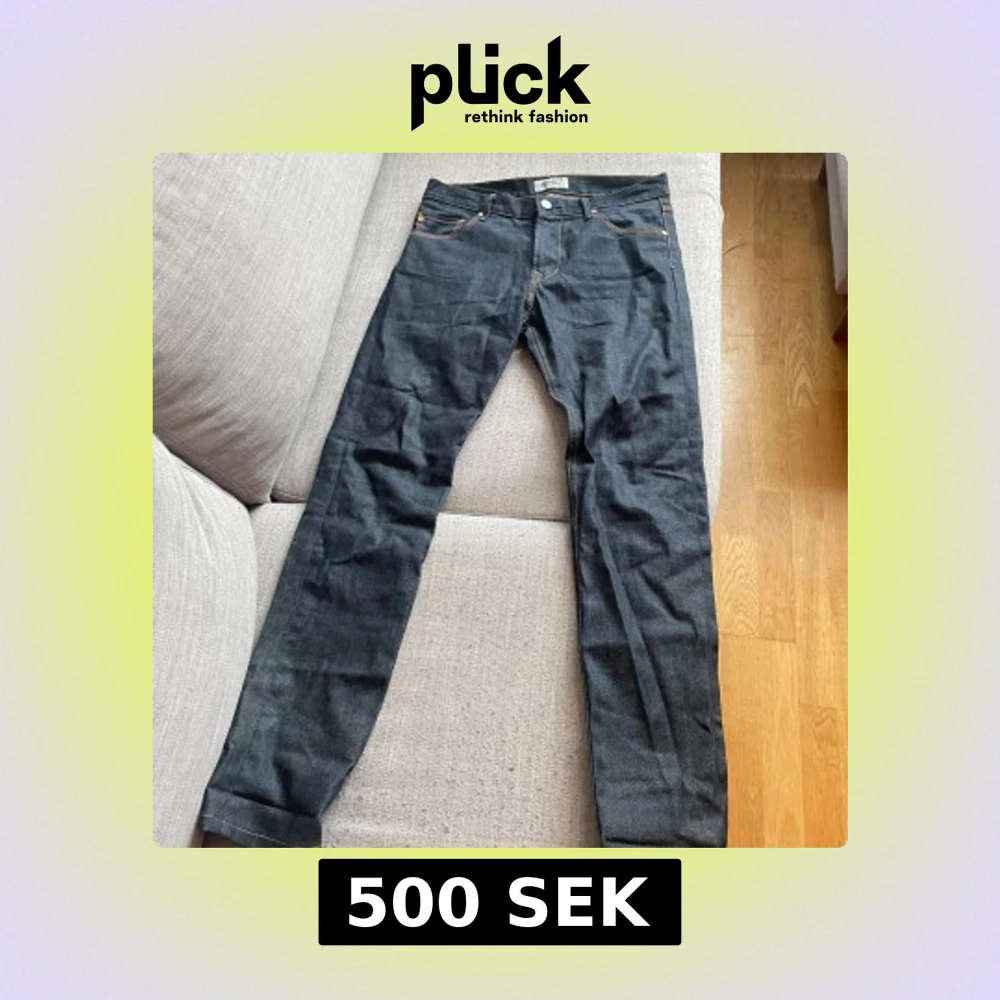 Säljer ett par mörkblå jeans från WESC, modell EDDY. Byxorna har klassisk femficksdesign, raka ben och kontrastsömmar. Snygg detalj med gul patch bak i midjan. Perfekta för dig som gillar stilrena jeans med en twist.