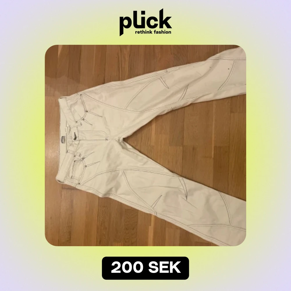 As balla vita jeans som är raka\åt de vidare hållet i benen, passar en s-m men passar nog även på mindre om man vill ha mer baggy passform. W31/L32
