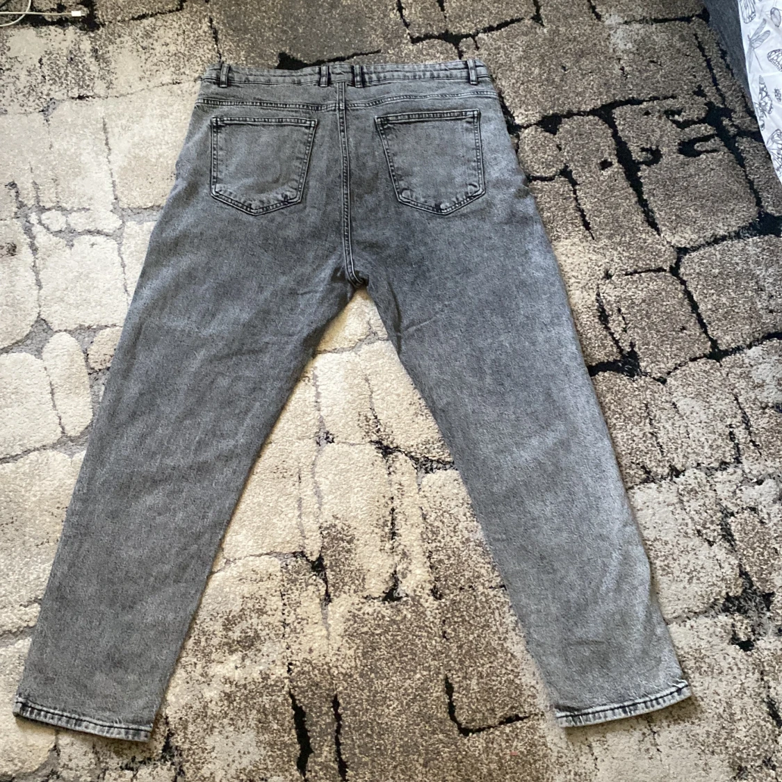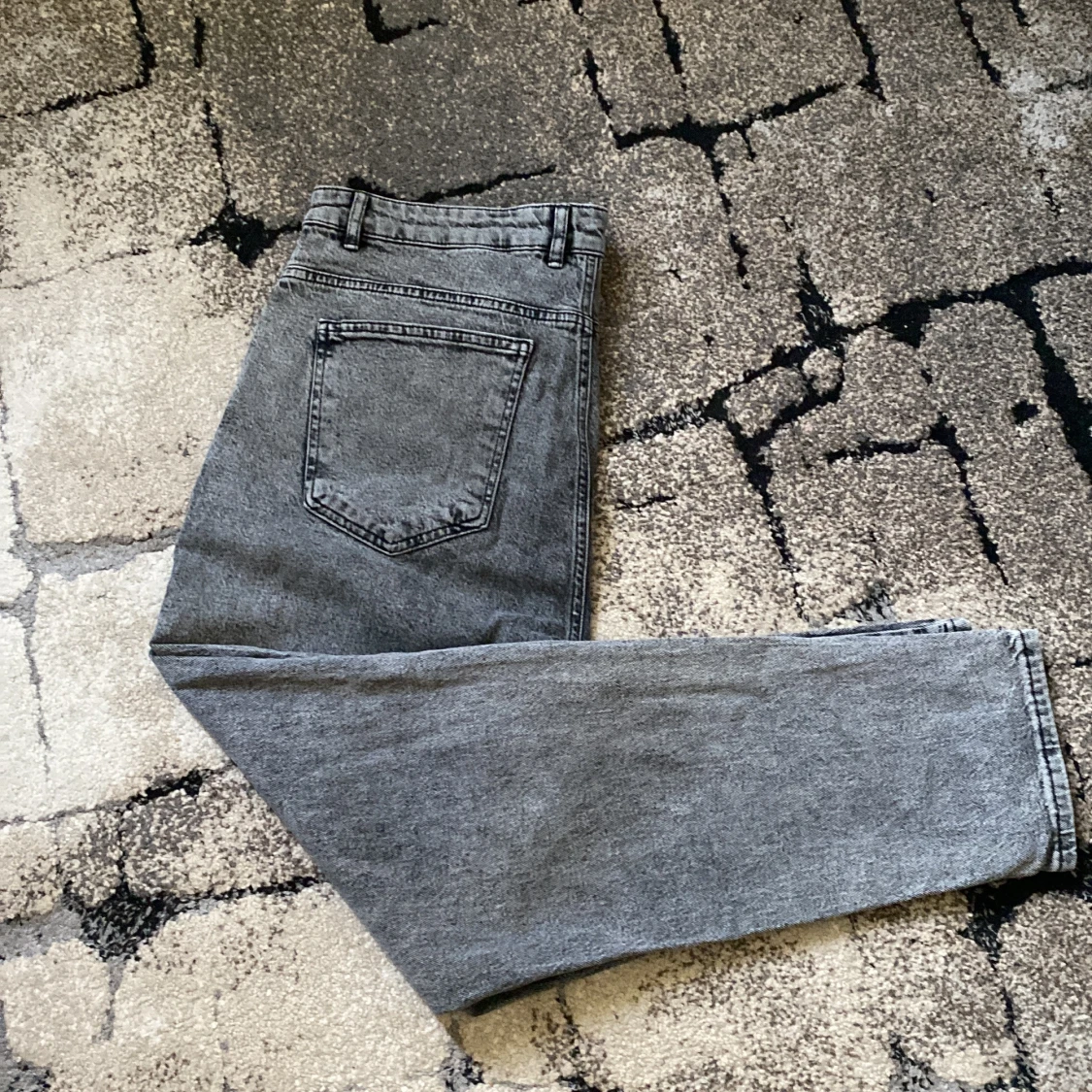 Säljer ett par grå jeans med klassisk femficksdesign och rak passform. Jeansen har normal midja, dragkedja och knapp framtill samt bälteshällor. Perfekta för en avslappnad stil. Helt nytt är nye använt så mycket