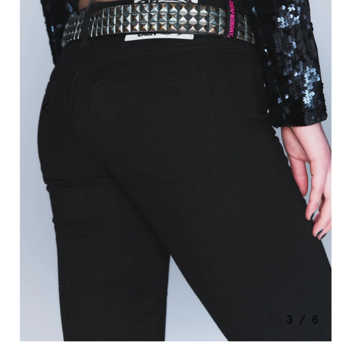 Säljer ett par svarta låg midjade flare jeans från weekday!! Skit snygga jeans och visar verkligen kroppens form. Köparen står för frakt!! SLUTSÅLD PÅ HEMSIDAN! Jeansen är hyfsat urtvättade, kom privat om ni vill se bättre bilder på de! 🤍