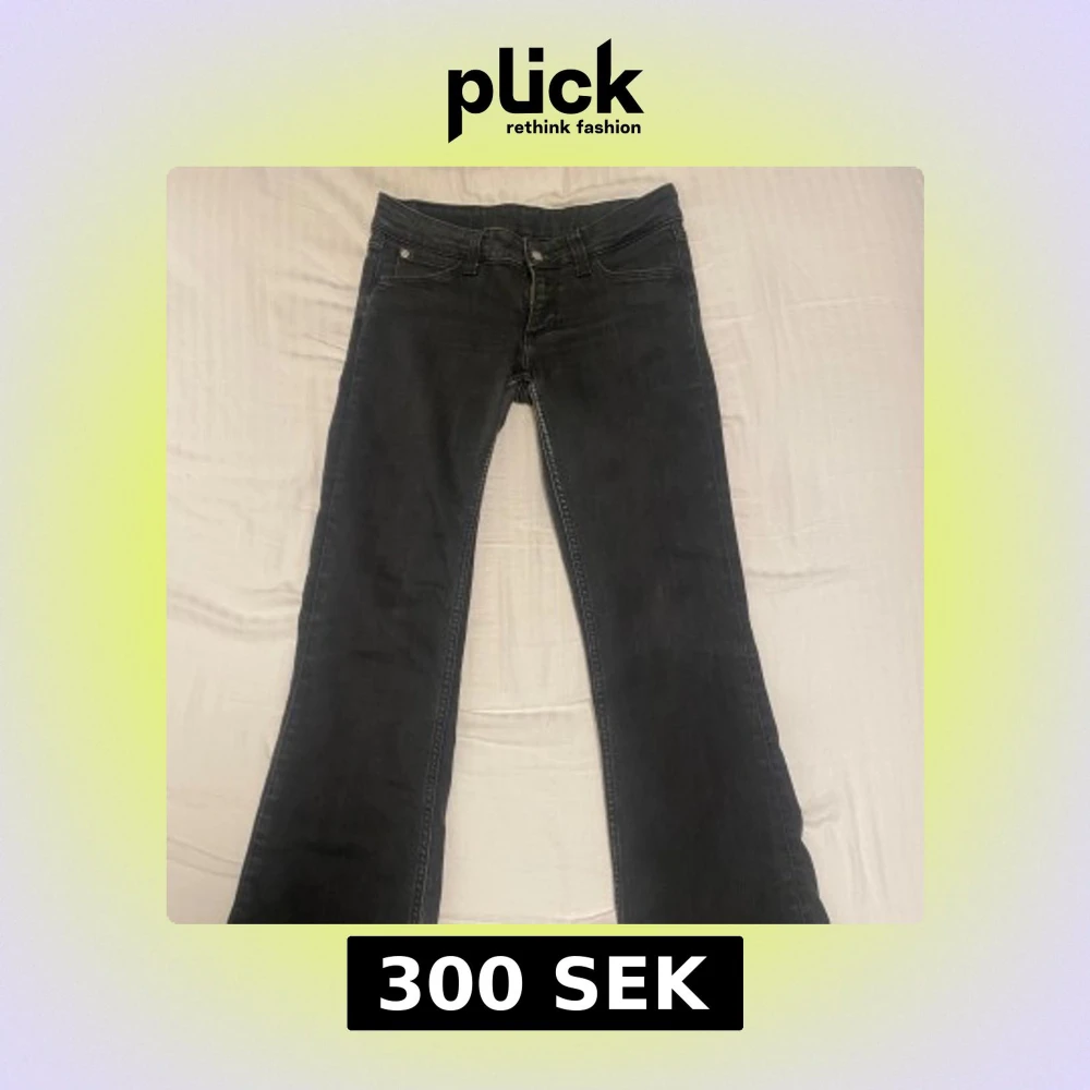 Snygga svarta bootcut jeans från cheap monday i storlek 30/32. Lite slitna längst ner.