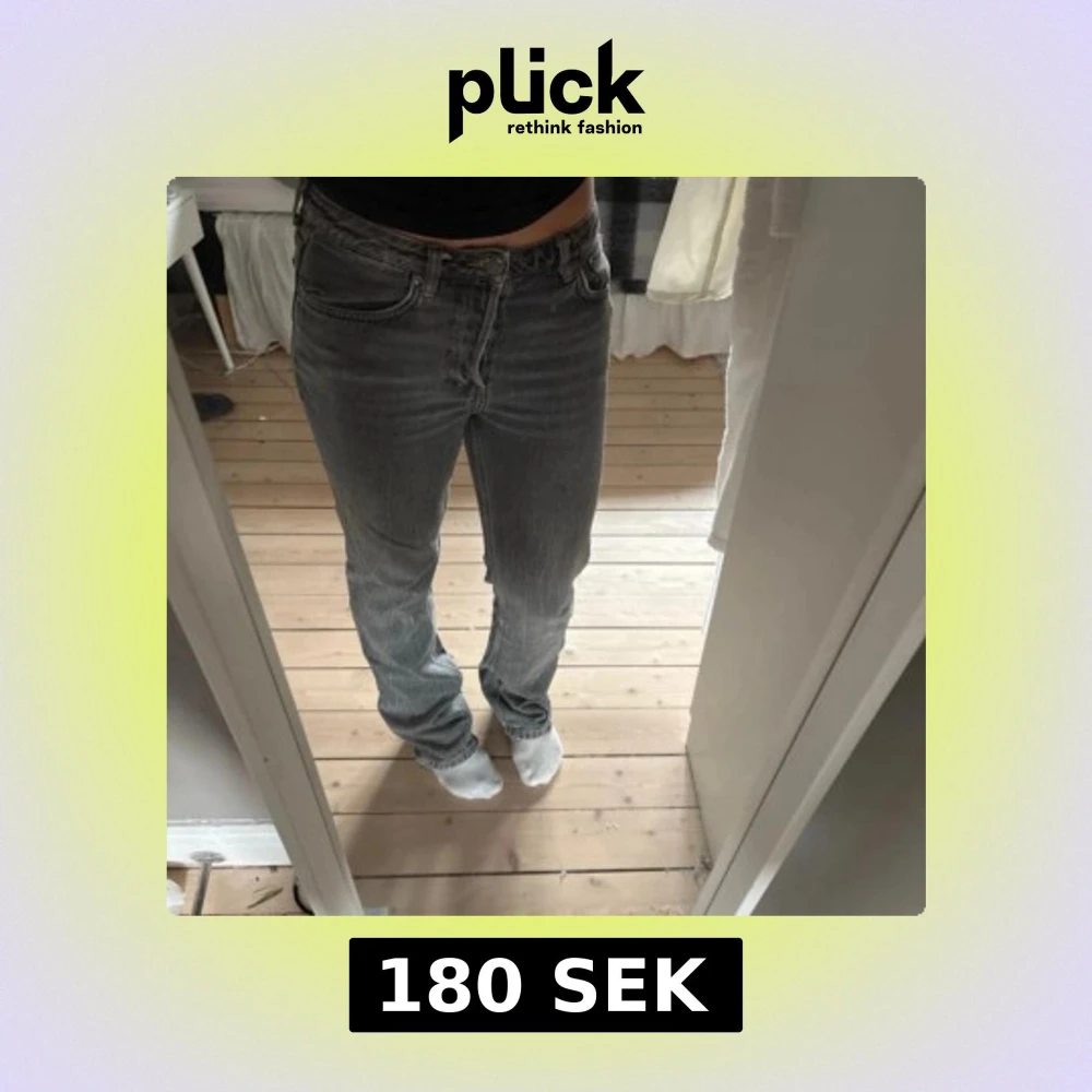 Säljer ett par grå jeans från weekday med klassisk femficksdesign och rak passform. Jeansen har normal midja och är tillverkade i slitstarkt denim. Perfekt för dig som gillar en enkel och clean look.