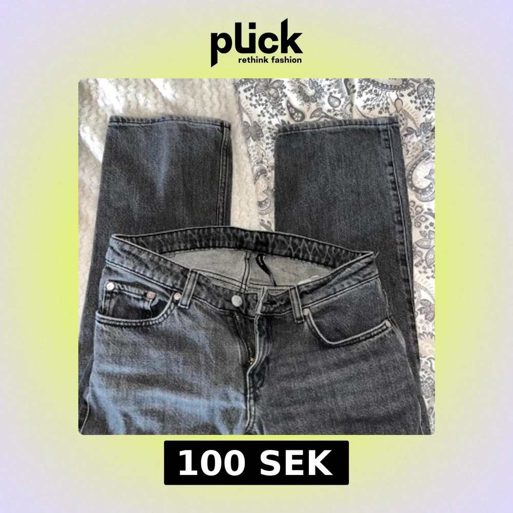 Säljer ett par svarta jeans med rak passform och klassisk femficksdesign. Jeansen har en snygg tvättad look. Perfekta för dig som gillar en enkel men stilren stil.