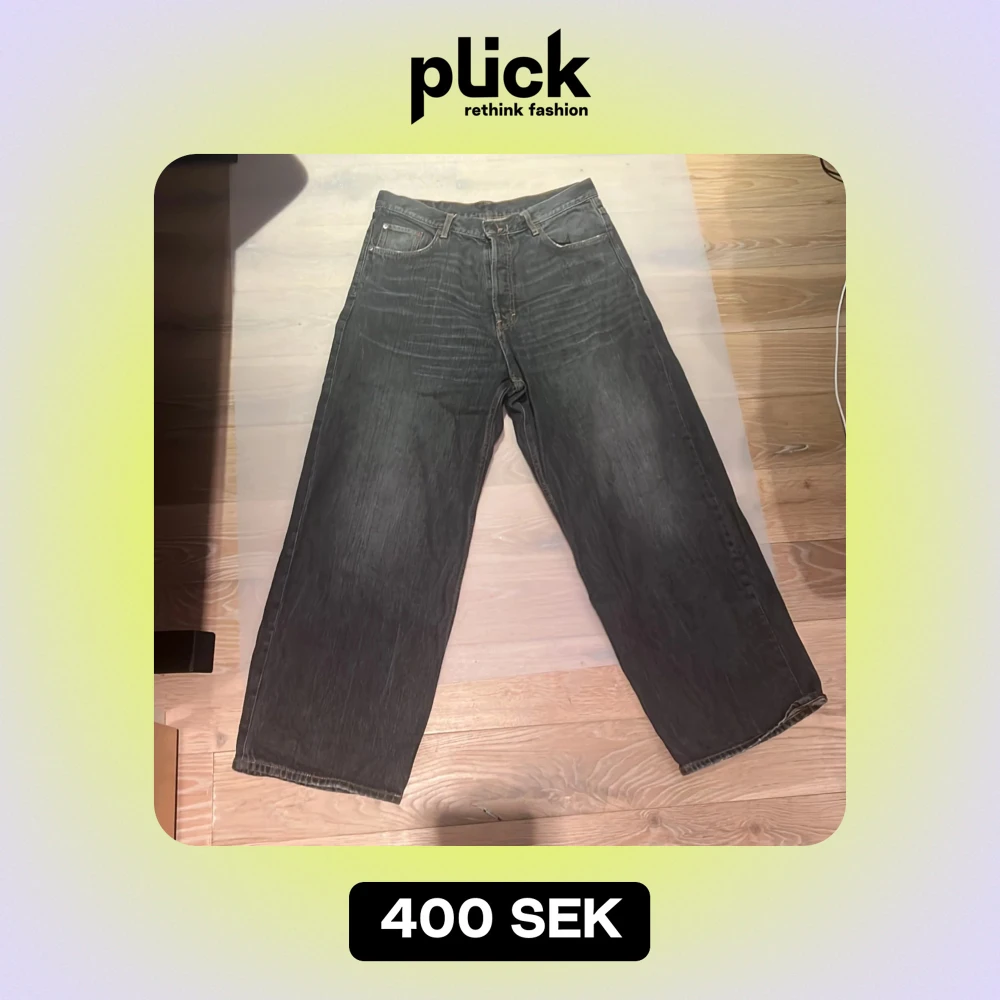 Säljer ett par grå jeans från Weekday, basically nytt skick(använt de 1-2 ggr) storlek=34/32 deras baggiest typ av byxor!
