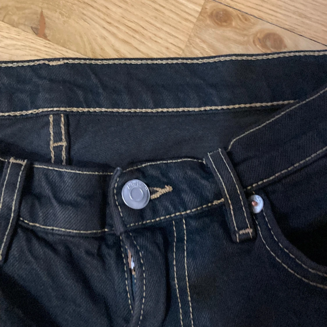 Ett par bootcut jeans från arket i bra skick, dock lite slitna längst ner (bild 3). Jeansen är egentligen blåa men är omfärgade till svarta. Riktig snygg gul stitching! Dam modell men passar herr också. Nypris ca 900.