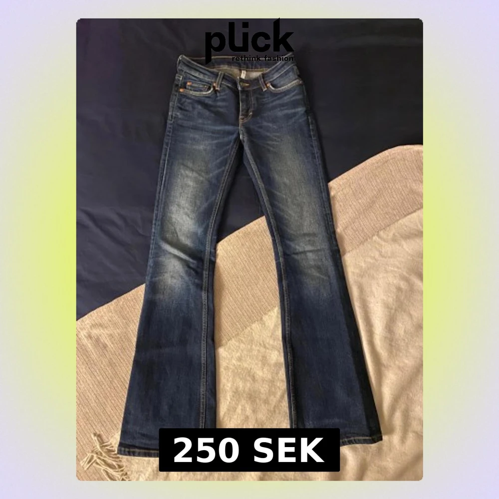 SKIT SNYGGA blå jeans från Weekday, modell Flame Low Flared Jeans. De har låg midja och utsvängda ben med klassisk femficksdesign. Jeansen är tillverkade i jeansmaterial och har en cool tvätt med lätt slitning på låren och bakfickor. Älskar dessa så mycket!, men tvingas sälja då jag har växt ur dom🙏😔 Pris går att diskutera!